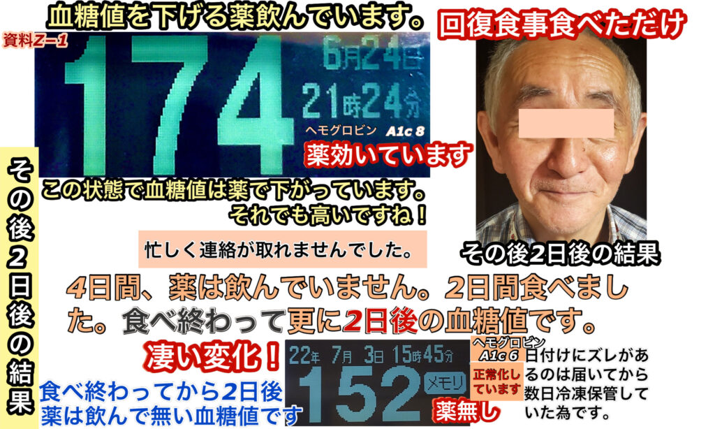 - 重度の糖尿病患者(医者に捨てられた末期)の結果