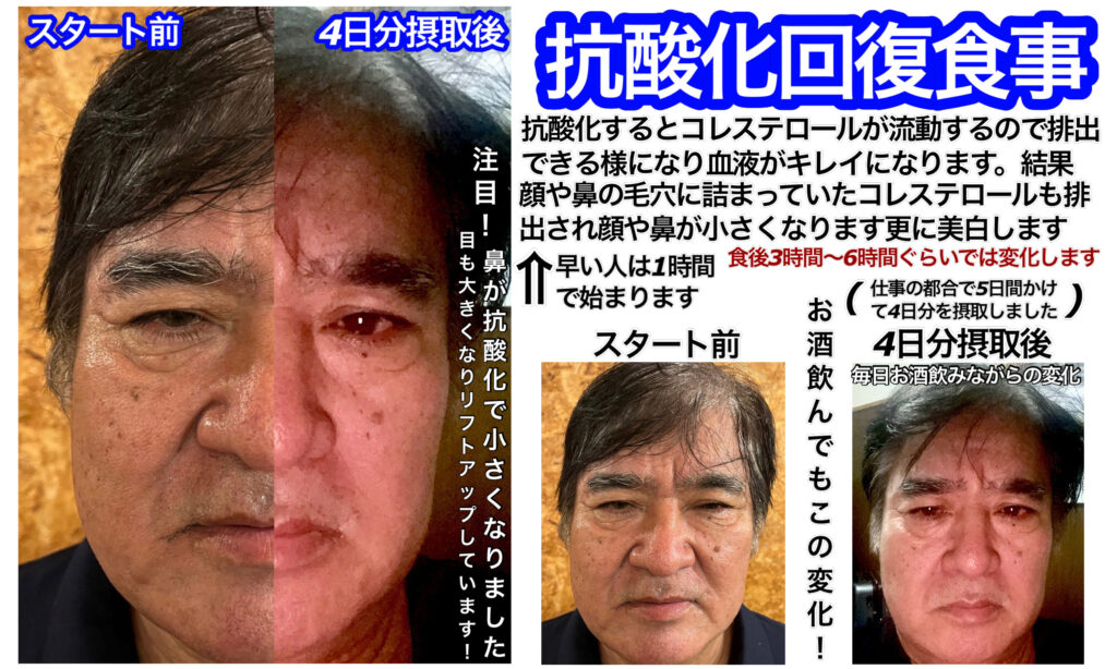 - 『「一矢流」抗酸化回復食事レベル4』1日分を4日間かけて食べた時の変化