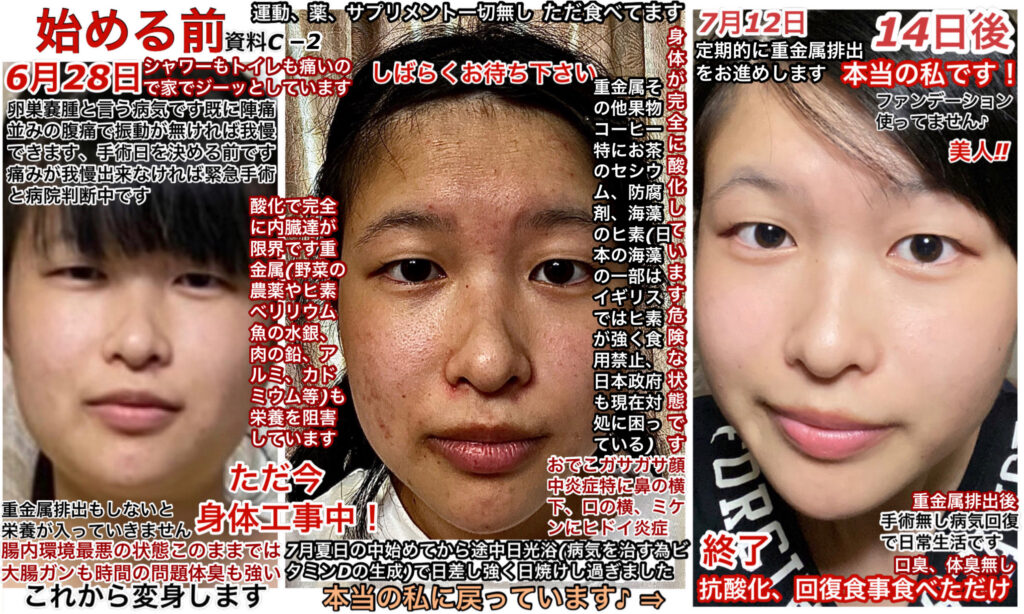 後は代謝が弱ければ話になりません。代謝が弱いのは栄養不足です。必須約30種類が足りていないか、過剰摂取で異常状態になっている事が原因です。