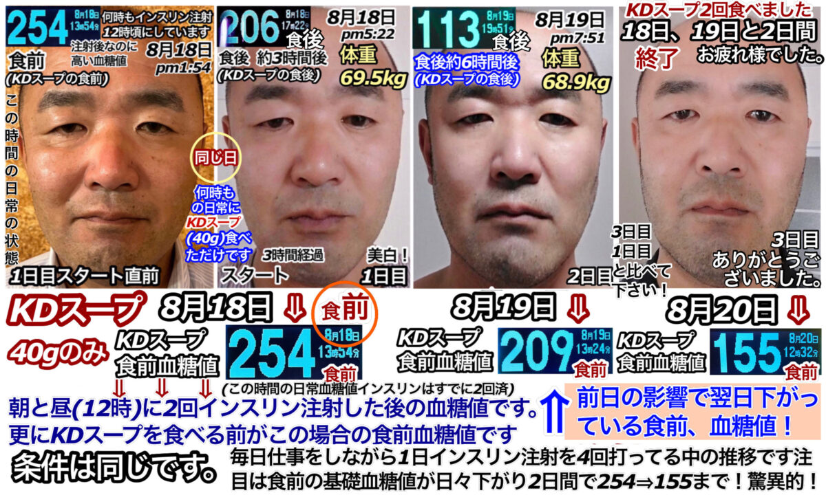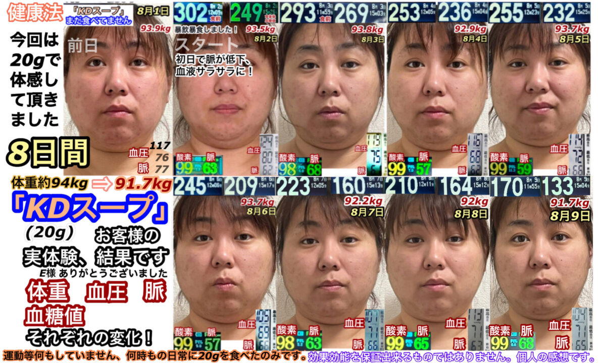 - 重度糖尿病「KDスープ」20gを8日間(血糖値・むくみ・ダイエット)