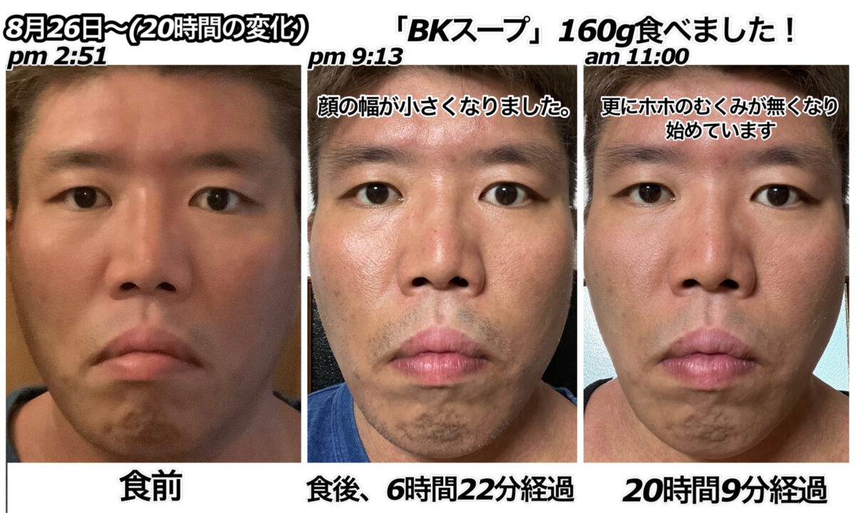 ↑スタートから3時間ですでに小顔になっています。この人の場合、晩酌は毎日しています。