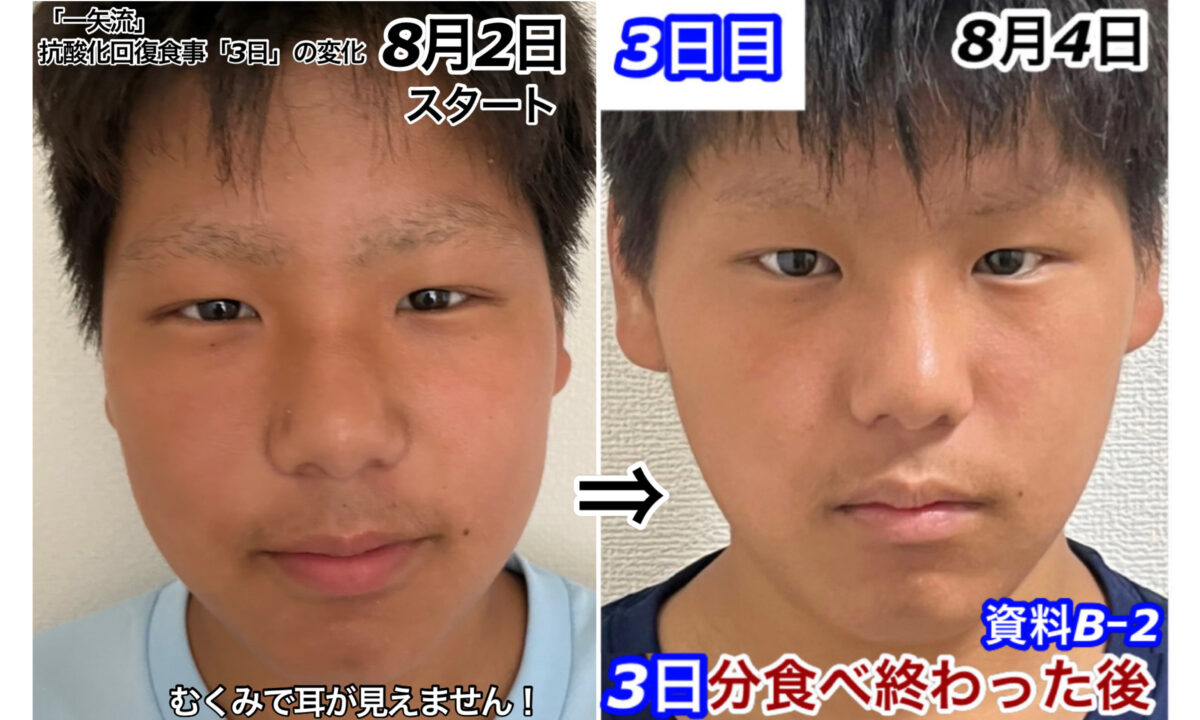カテゴリー 結果データ 結果データlむくみ「一矢流 抗酸化回復食事」 投稿者 作成者: kousankashokuji 投稿日 2022年9月23日 ⬆︎こちらの変化にかかったお食事代 (3日分) [取扱い店予測価格]テイクアウト年内価格 「68,000円(税込)」(21,000円✖️3日分+消費税) これぞ「一矢流」「抗酸化回復食事」の真骨頂! ← 結果データk 美容回復 → 一矢流抗酸化回復食事の1日の変化