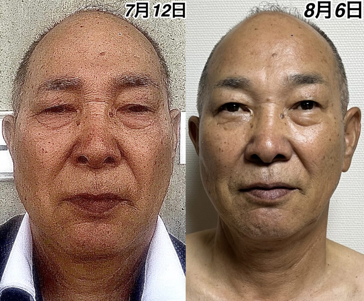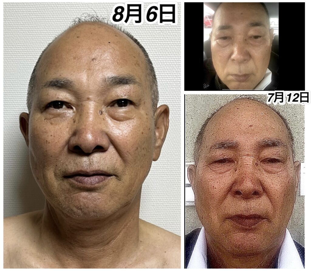 この短期間で、手の麻痺も半分以上改善できてよかったですね。髪の毛も納得いただいた状態までたどり着けてよかったです。身体が軽い体感を感じていると伺いましたが、上記の写真を見れば一目瞭然ですね。もう安全圏だと思われるので、血液検査を楽しみに待っております。