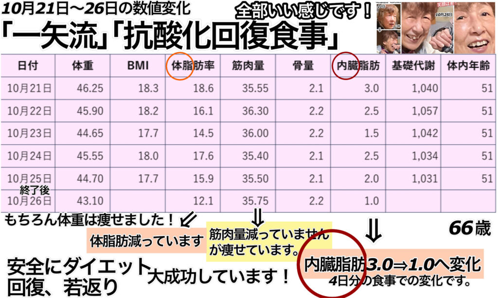 「一矢流」「抗酸化回復食事」24時間後の写真です。驚異的な事実です。