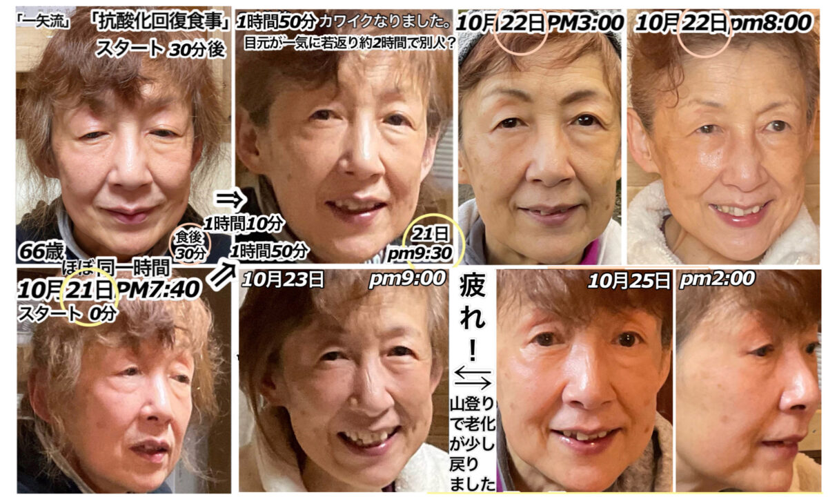 「一矢流」「抗酸化回復食事」24時間後の写真です。驚異的な事実です。