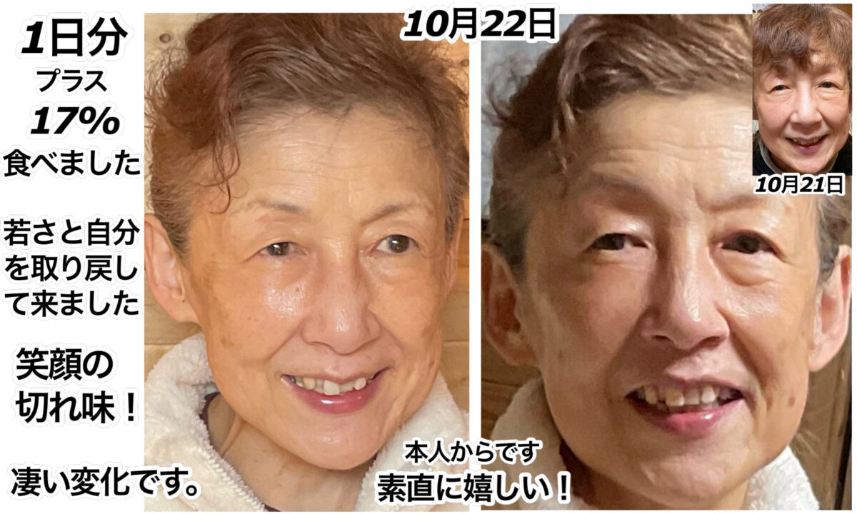 2日目になりますが、正確には『1日分+1日分中の17%分』しか食べていない現状ですが、「ふざけないで下さい!」と思うくらいの変化に圧倒されました。