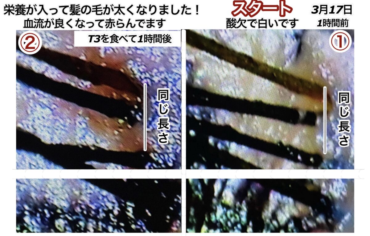 基本的に髪の毛の栄養は、最低血行を良くする事です。次は睡眠を8時間目安で取ること。あとは、抗酸化する事と、当然今回の様に栄養素を摂ること。栄養素を極端に消費する様な運動など、自分の内臓にあった内容量をいくら栄養素を補給しても、精神的ストレスや、運動量のばらつきで、栄養素の吸収のバラツキになります。があると、吸収されない訳ですから、効果はありません。