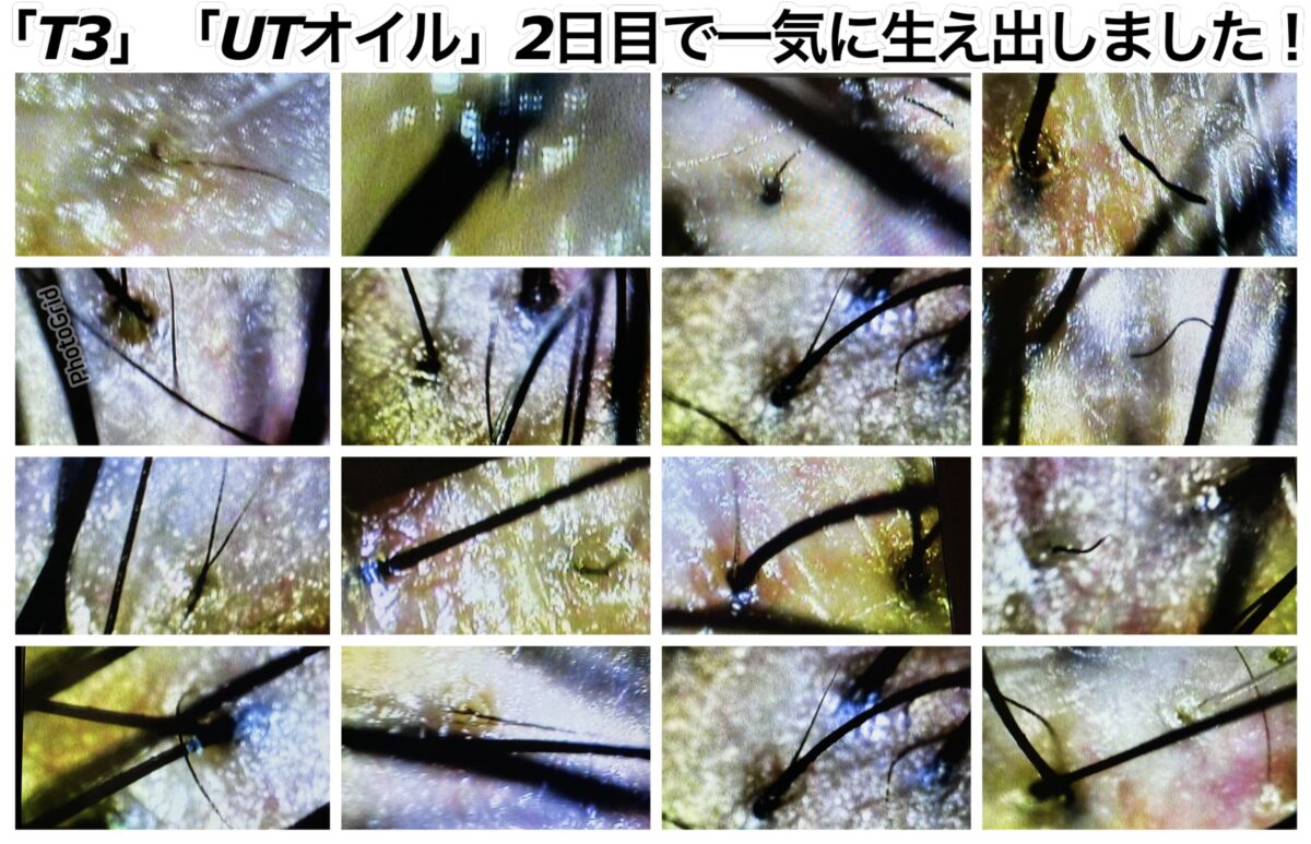 元々の条件が良い人は、「UTオイル」のみで、3日くらいで髪の新芽が出始めます。