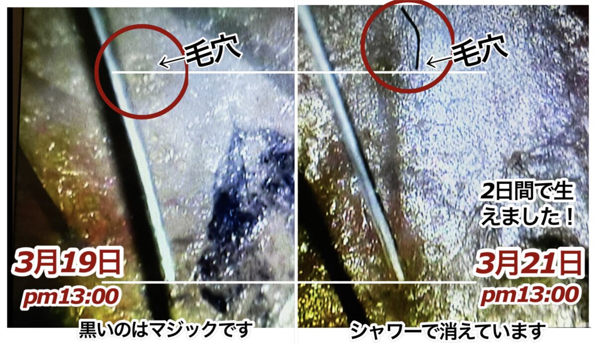 マイクロスコープでスタート時に地肌の写真を撮り、1週間後の地肌の写真を撮ると、違いが証明出来ます。