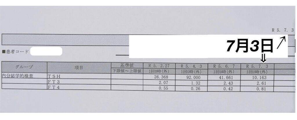 こちらの方も女性ですが、「TSH 110」を超えて推移した場合は、難病認定をされる重症の甲状腺橋本病になります。もうここまで来れば安全だと思われます。次回の報告もいただけるようであれば、今月中には正常値になっていると思います。ぜひ次回の報告もいただき、正常値の数値を表記したいですね。引き続きよろしくお願いします。