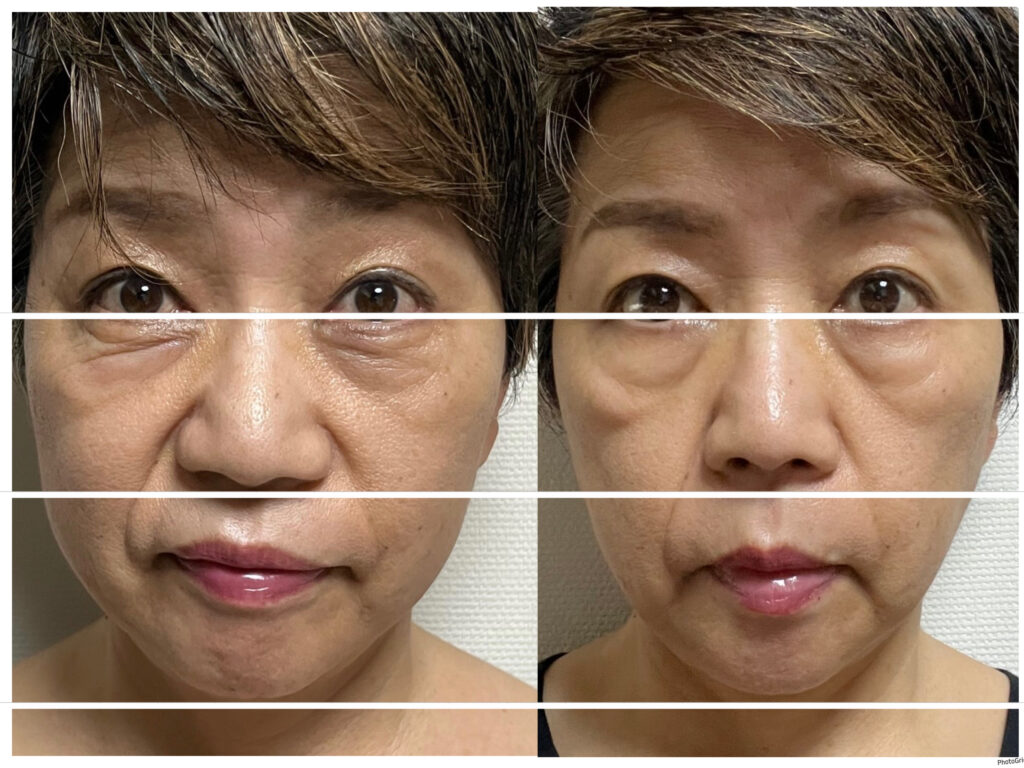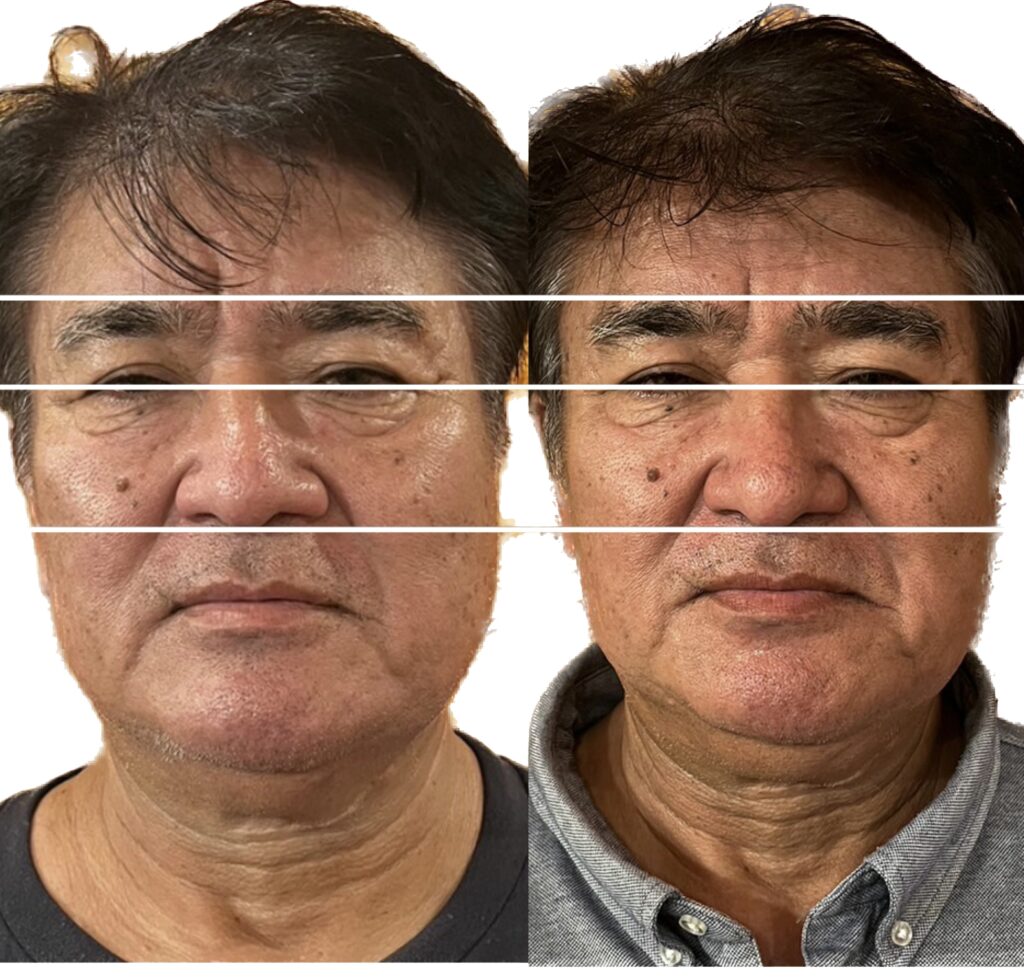スタートの7月8日から7月18日で10日後になります。目の下の横に走るシワを気にされておりました。それをなくしたいとのお話で、身体の血液検査項目にも色々な課題はありましたが、およそクリアしたはずです。この違いは当然血液が変わり各内臓が変わった結果の若返りになります。