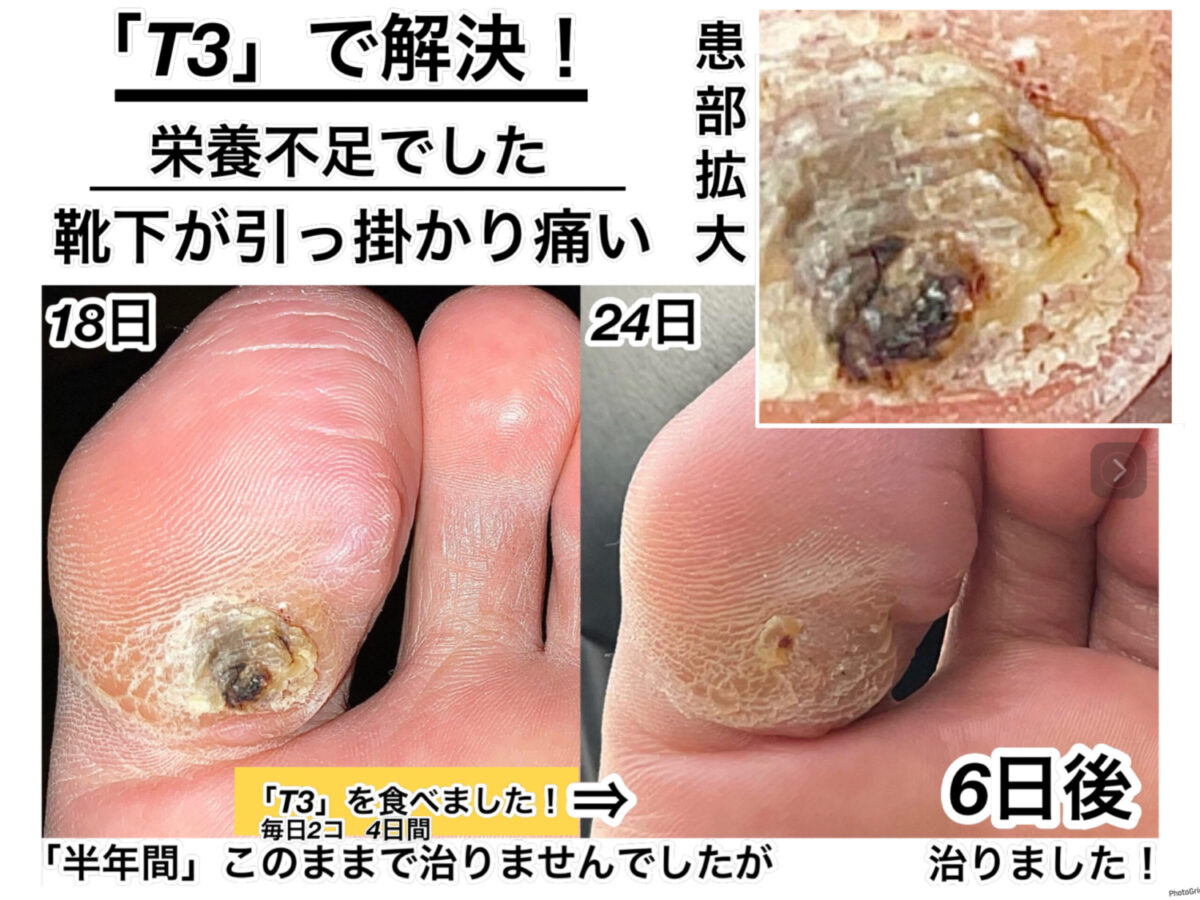カテゴリー 結果データ 結果データCG① 足の怪我がきっかけで1年以上ヒドイ状態で、皮膚が盛り上がってくる度に、爪切りで切っていました。歩く度に、1年間血だらけでした。え⁉︎6日⁉︎ 投稿者 作成者: kousankashokuji 投稿日 2023年7月31日 単純に栄養不足です。 「T3」で解決しました。