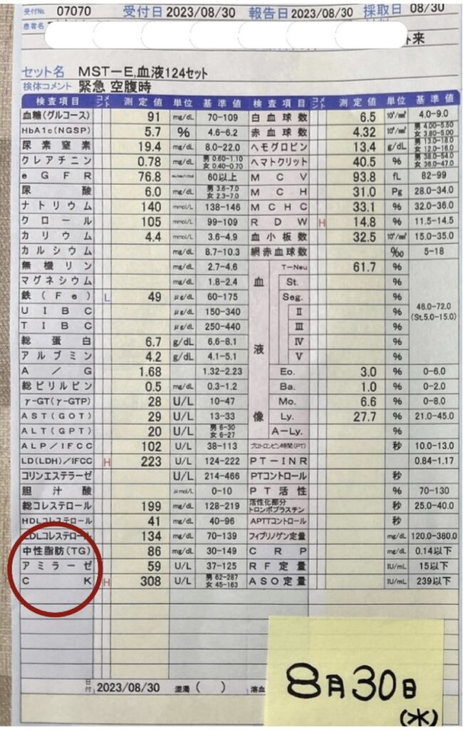 病院側には、この項目を名指しで最初から検査をしてほしいと言う事を伝えていましたが、無視され、数値は出て来ませんでした。