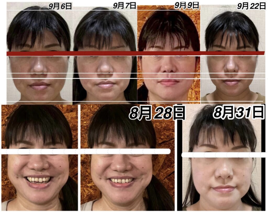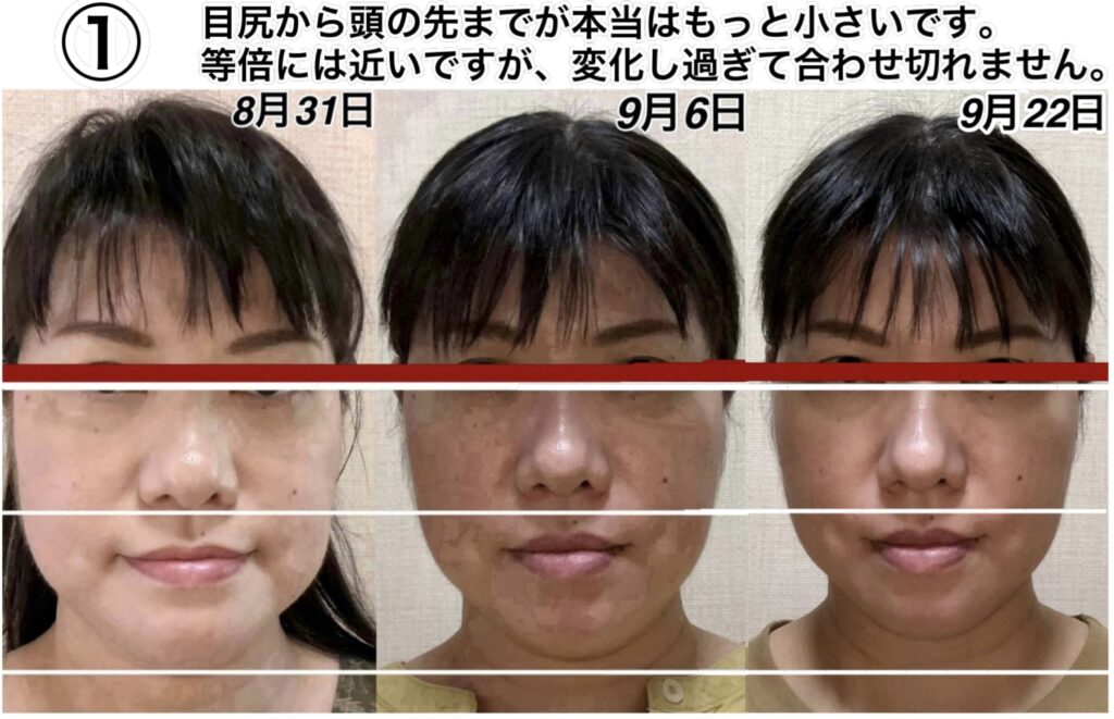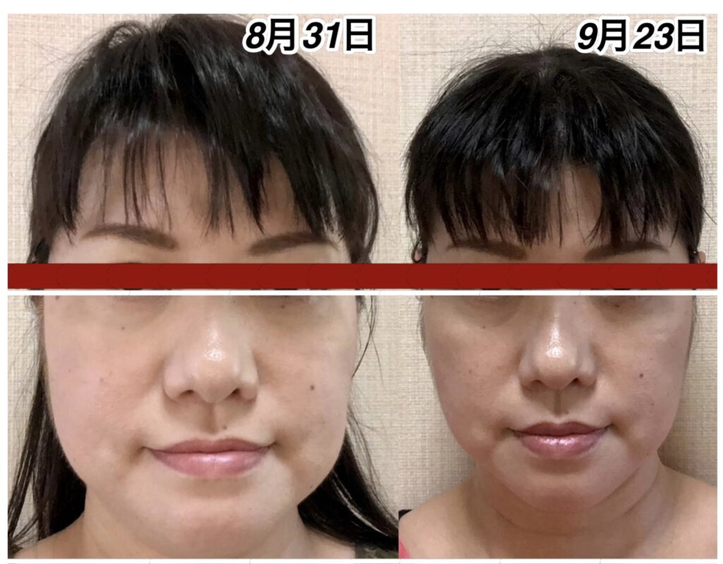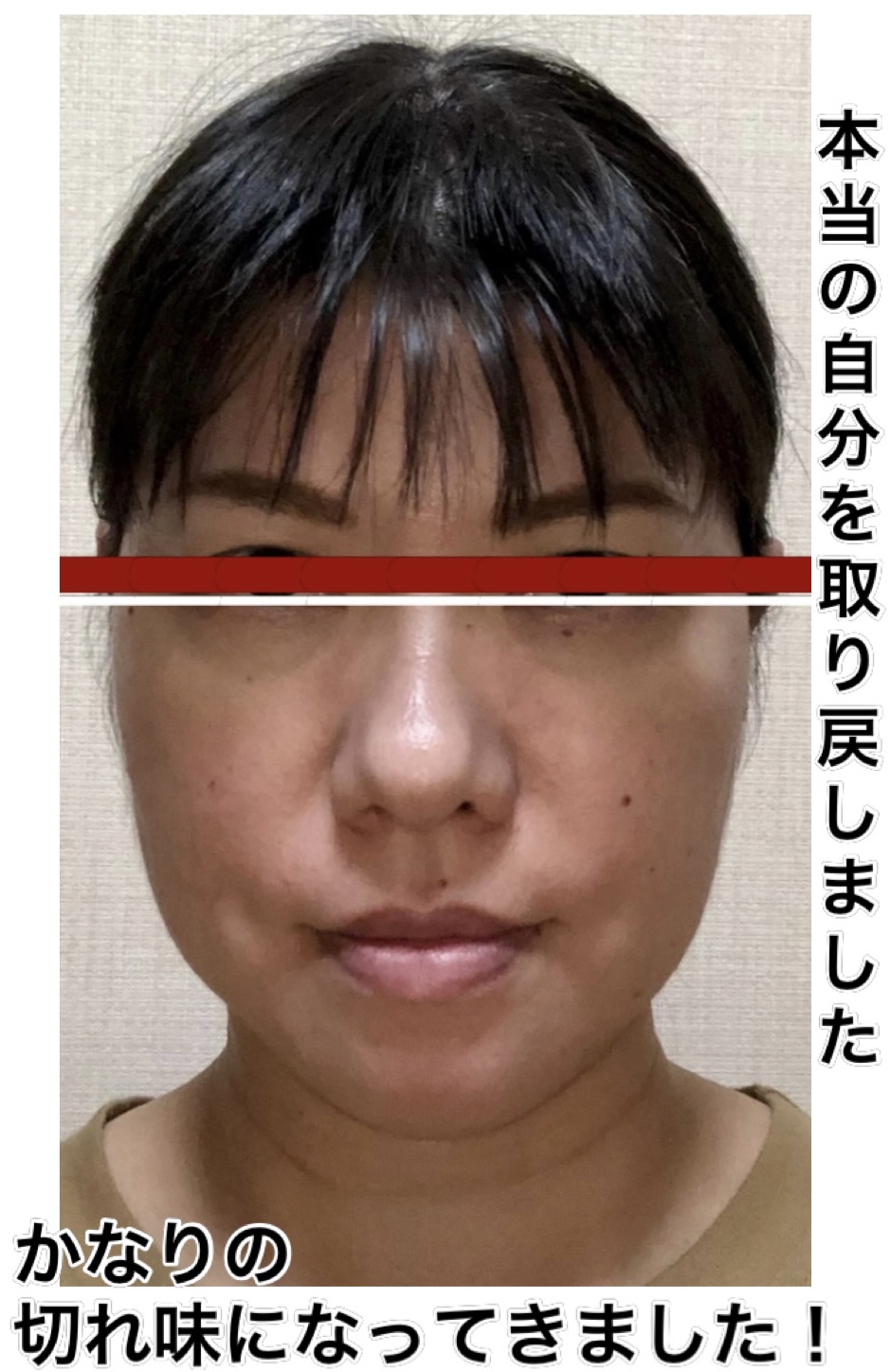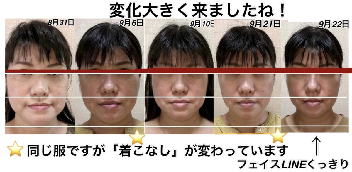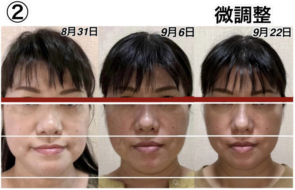 下の顔の大きさを見ていただけるとわかりますが、小顔になってきています。いわゆる若返っている状態です。