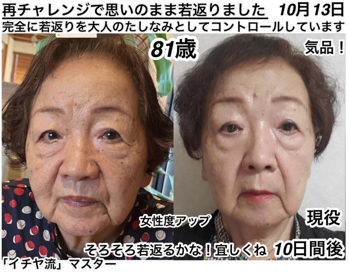 カテゴリー CF 81歳美の探求。若返りの旅で人生倍楽しみます。 結果データ 結果データCF⑩ 「81歳」『美の探求』もう一度タイムスリップで人生を倍楽しみます。今若返りの旅を開始しました。 投稿者 作成者: kousankashokuji 投稿日 2023年10月14日