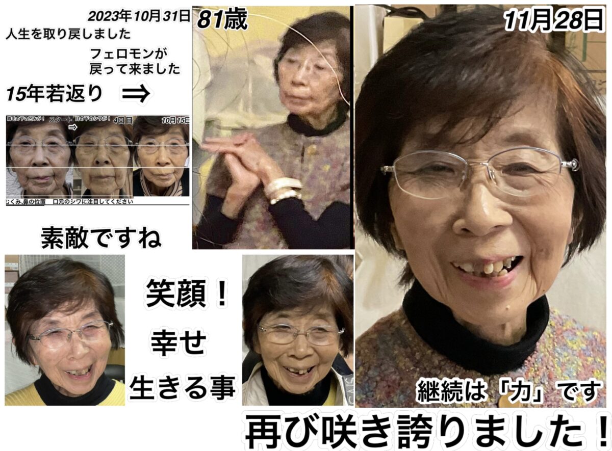 危機管理のある頭の良い彼女は、若さを取り戻しました。それだけではなく、女性の魅力を炸裂させています。再び咲き誇った桜は、見事に咲いています。いつでも咲き誇れることを示していただきました。笑顔の奥には、静かだが、強い意識を感じます。奥行きのある笑顔ですね。人生を取り戻した彼女の心が笑顔に出ていますね。ただただ、お見事❗️素敵です❗️
