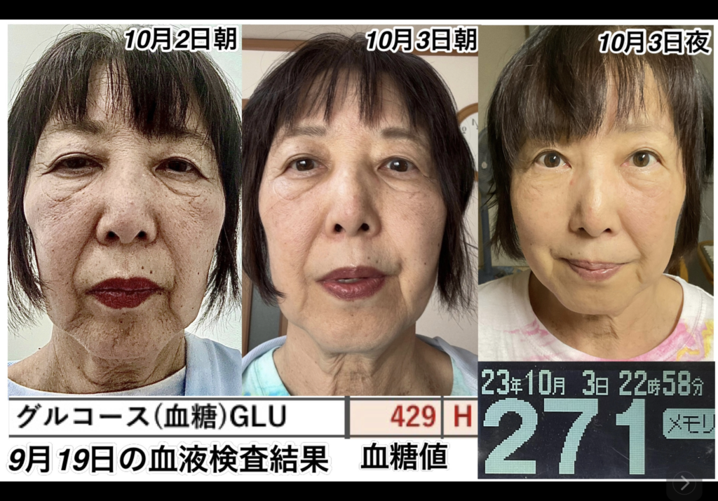 順調回復、よかったですね。引き続きの回復を先手で勝ち取りましょう。チームワークが生死を分けます。。血糖値の問題よりも、毛細血管の回復の問題の方が、現実的に時間がかかるので、しばらく気は抜けません。世の中では、この毛細血管は回復しないと言われています。なので麻痺はずっと残ると言うことになっています。一矢流では圧倒的に短期間で治っている方たちしか居られません。100%治るかは分かりませんが60%以上は、早い段階で、皆さん回復に変化しています。 通常の通常の世の中の病院などでは、インスリン等を使わなければこの血糖値すら変化させることはできません。いわゆる根本解決ではなく、インスリン投与で解決。それが効かなくなった時が、深刻な状態であり、毎日インスリン投与を注射器ですることがリスクになります。一矢流はお惣菜を食べるだけで解決しています。引き続き頑張りましょう。