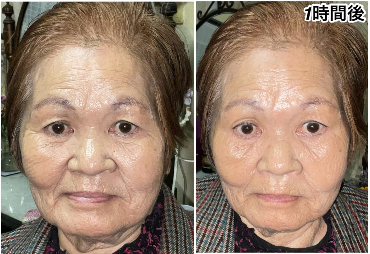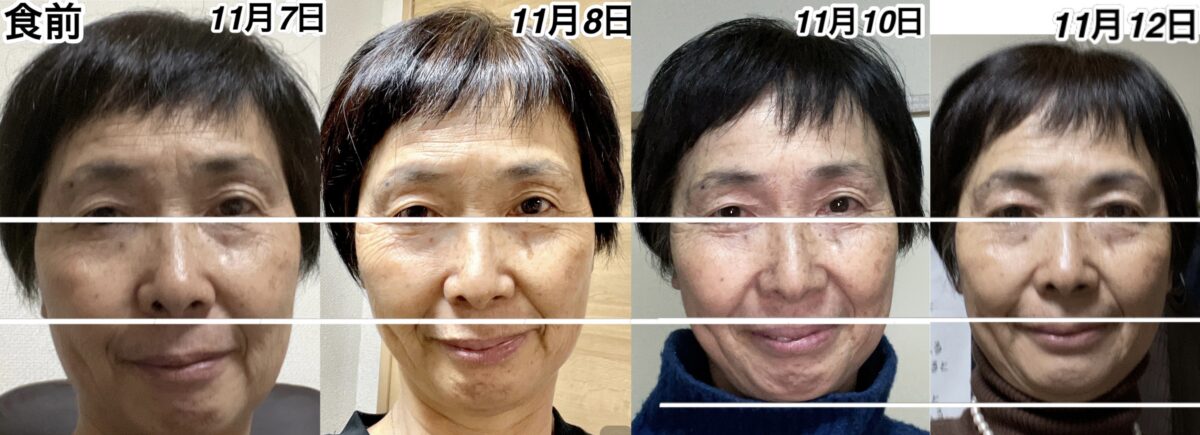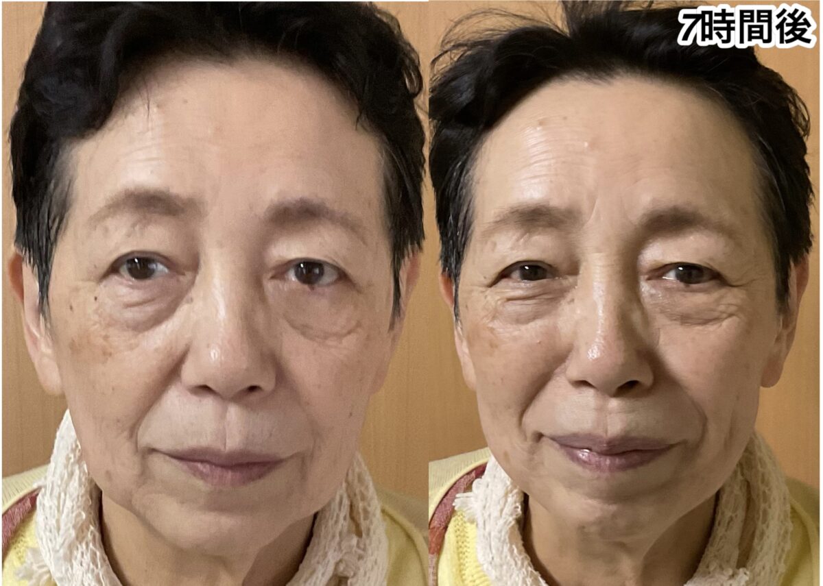 たった7時間で、ここまでの変化は、代謝が良い証拠です。体の中が若いと言う証拠です。今回は、滞りをなくすことが目的なので、もう目的は果たされました。素敵に若返っていますね。あごのたるみがなくなっています。鼻の高さも上がり、耳も上がっているので、活発的に可愛く見えています。