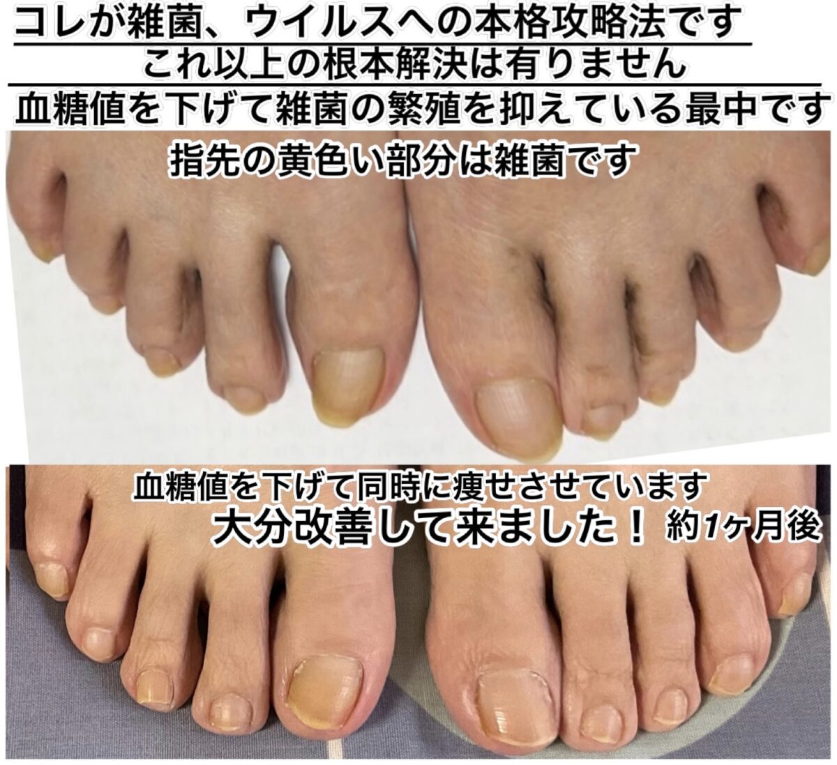 血糖値を下げて同時に痩せてもらっているため、足の指も細く長く、本来の美形が戻ってきました。8割改善していますが、血糖値を下げたのですが、まだもう少し血糖値を下げる必要があるようです。が、大部分は改善してきました。