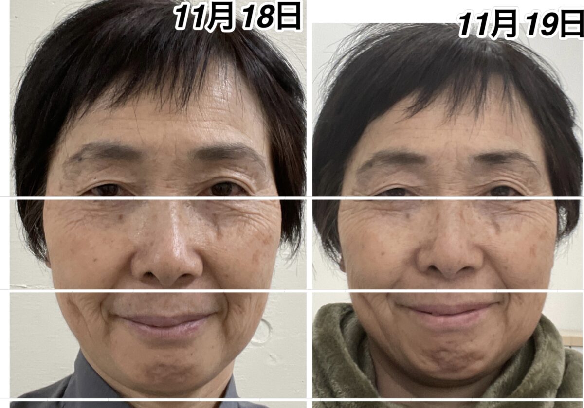 若返りが一気に始まりました。鼻より下が、かなりシャープになり、美しさが光出しました。いろんな調子に波がありますが、この問題の根っここそ、白血球の総数の少なさに原因があります。一見、彼女の血液検査は、内臓たちが元気だった故に血液検査結果してはかなり良い。血液検査結果とみなされやすいものでした。白血球も規定値も3500以上あったのですが、3640と言うギリギリの低空飛行でした。彼女の場合、血糖値管理がしっかりできていたので、痩せさせる必要は無いのですが、代謝の滞りをとっている程度の分量なのですが、一気に若返りが始まっています。よく見ていただけるとわかりますが、ホルモン分泌がされた影響で、フェロモンが出始めました。女性としての色気と言う部分が、体の代謝とともに宿り始めました。白血球はまだ増殖させている最中なので、ウィルスにやられやすい状況には変わりありません。風邪などにご注意ください。2日ほどすると安定が始まります。本人様的には、体が軽くなってくるので、乞うご期待❗️