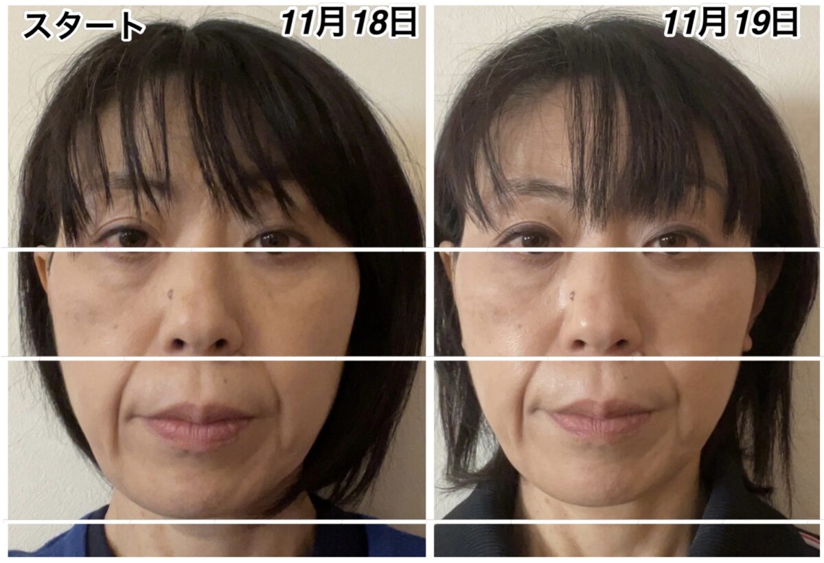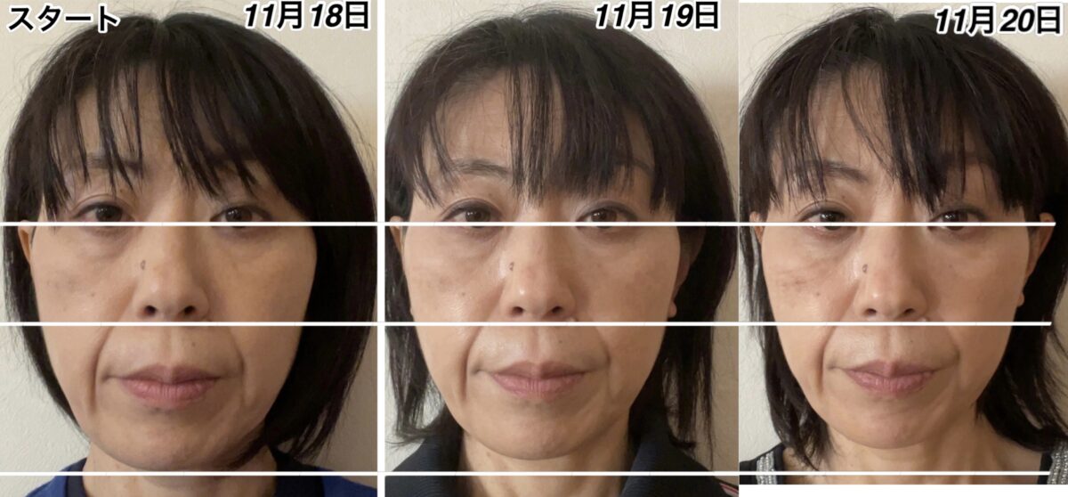 右の写真の方が太って見えますが、圧倒的に小顔にさらになっていることがわかります。