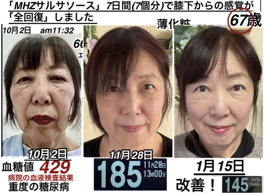 今回は、10月2日から糖尿病を攻略するべく、回復食事をして回復してきました。彼女は、本来、今回の最大寒気で命を落とすことが決まっていたような人でした。案の定、今回の寒気で、血管萎縮が予想通り始まり、血流が血管萎縮のために滞り、栄養が毛細血管へ運ばれないため、肌がガサガサになったり、擦り切れたり、いつもよりもダメージを受けやすい体になっていました。このダメージを計算に入れて、イチヤ流の回復食事を積み上げてきたので、ギリギリ麻痺を治しながらも、逃げ切れた模様です。まずは一安心。寒いということは、体にとって、恐ろしくリスクになります。もしこれが、夏の時期であれば、彼女は回復食事の分量が、4分の1程度で同じ回復をしたことでしょう。暖かいか寒いかは、命を分けます。皆さん、くれぐれも体を冷やさないように、冬を乗り切ってください。血流の滞りの初歩は、肩こり、筋肉痛、肌のガサガサ、などが出てきます。その時に気づいて欲しいのは、血流が滞っていると言うことです。まずは温めてみてください。それだけで事情が変わるはずです。