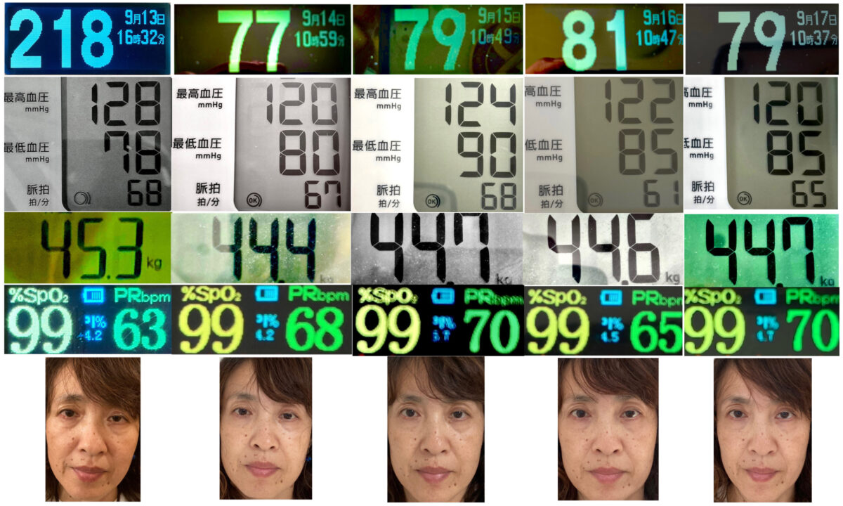 9/15の夕食は、ハンバーグを少しと、生姜焼き定食を食べました。更に翌朝、朝ご飯+「KDスープ」を食べた3時間後の【血糖値81】です。食事は日常通りで全く抑えない状態での変化・結果です。