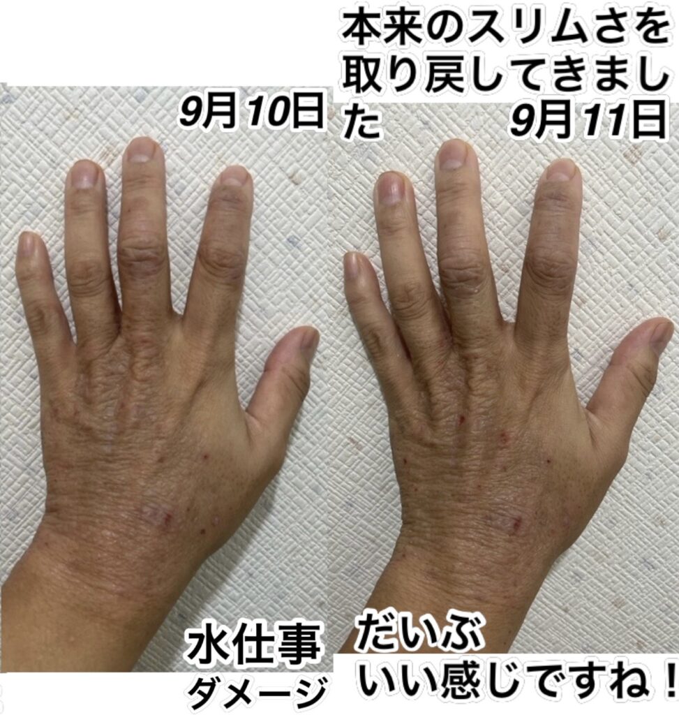 ご覧下さい。指は細くなり、手首も細く戻りました。