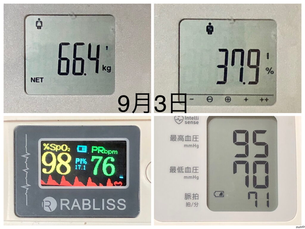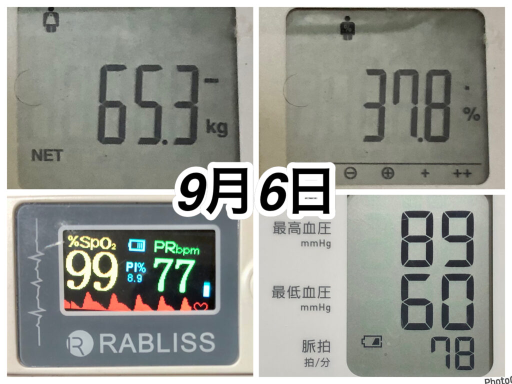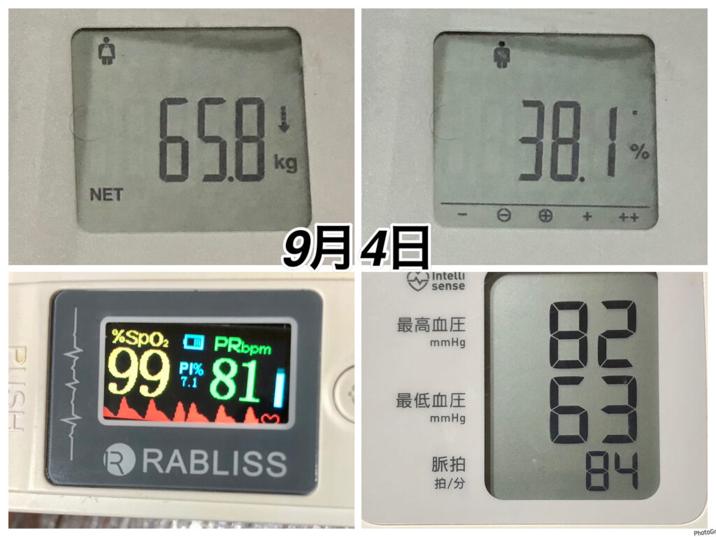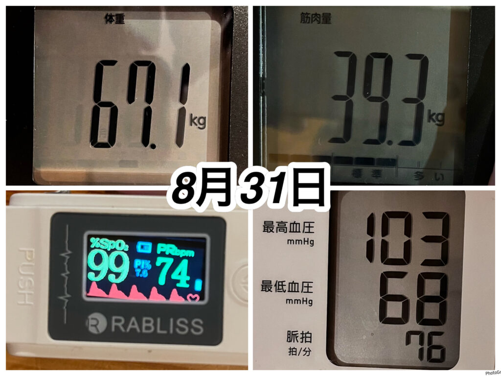 左側の8月31日〜部品で「BSZ」と「そぼろ肉ネフローゼSWむくみ•髪」を食べて、すでにスタート時には変化していました。