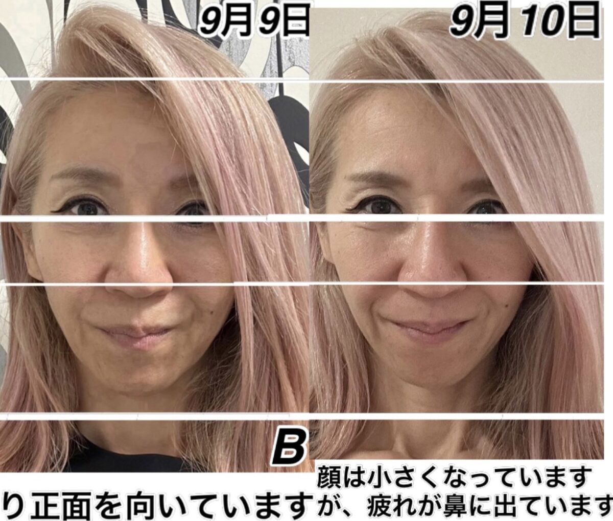 目元を見ていただいてもわかるように、上と下の凹み等が目立つようになってきています。