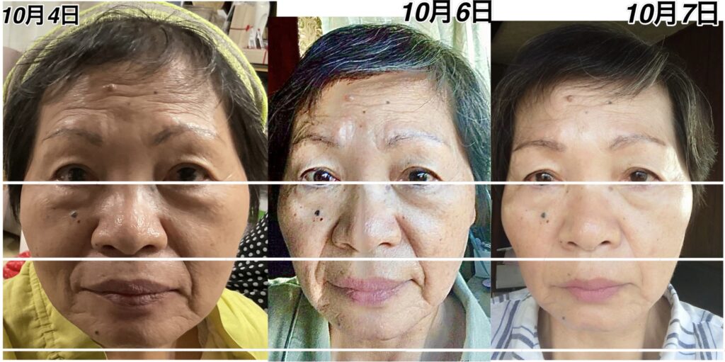 1番最初からこの写真を見て頂いている方は驚きだと思いますが、まだ鼻の位置が上がっています。という事は、明日はアゴの位置が上がるでしょう。