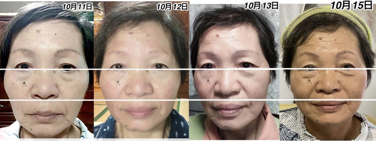 1番最初からこの写真を見て頂いている方は驚きだと思いますが、まだ鼻の位置が上がっています。という事は、明日はアゴの位置が上がるでしょう。