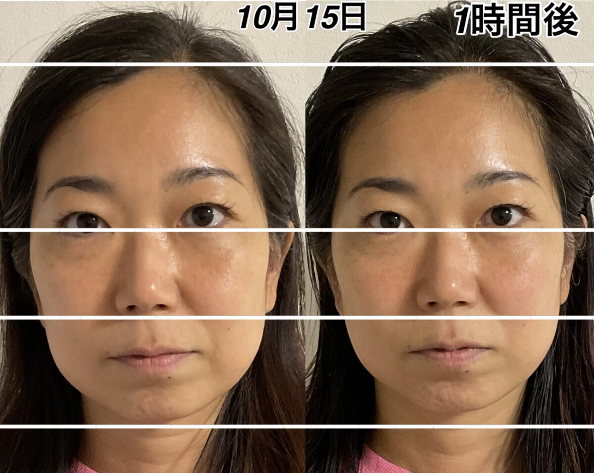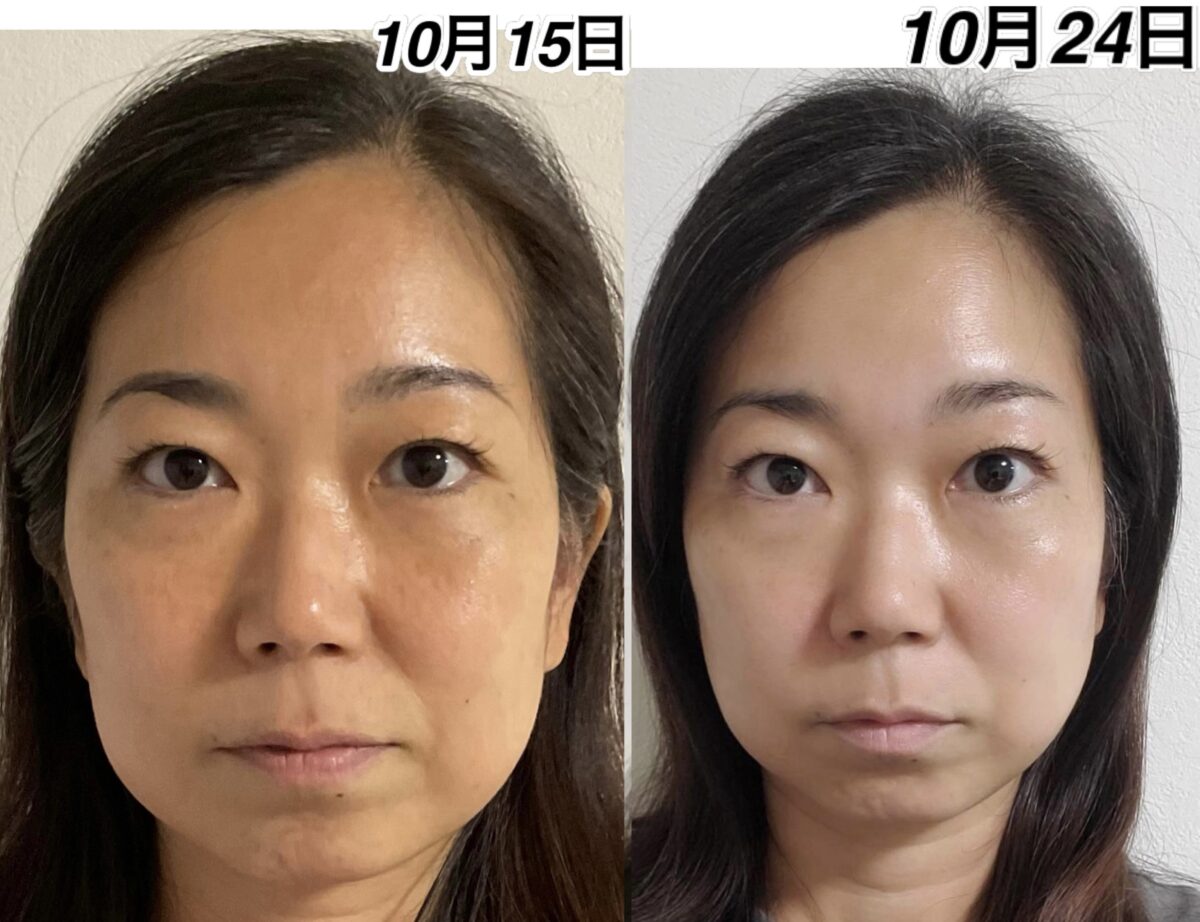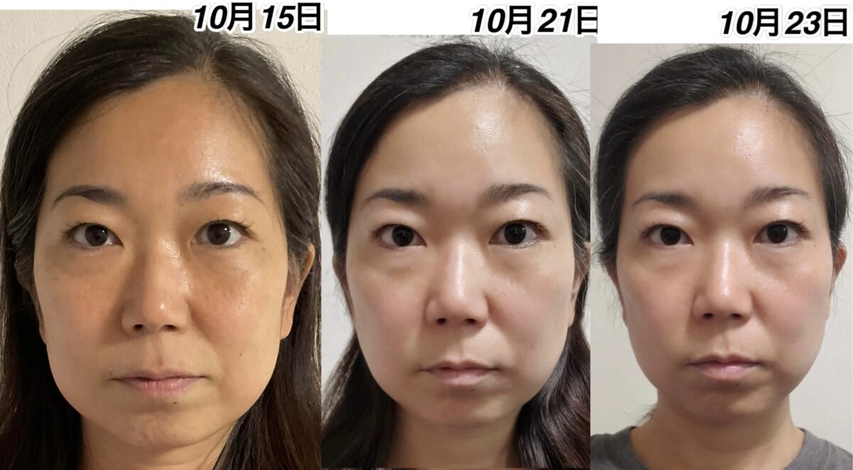 10月15日の酸化したお顔をよく見ていただけると、10月24日のお顔がいかに抗酸化しているかが分かります。