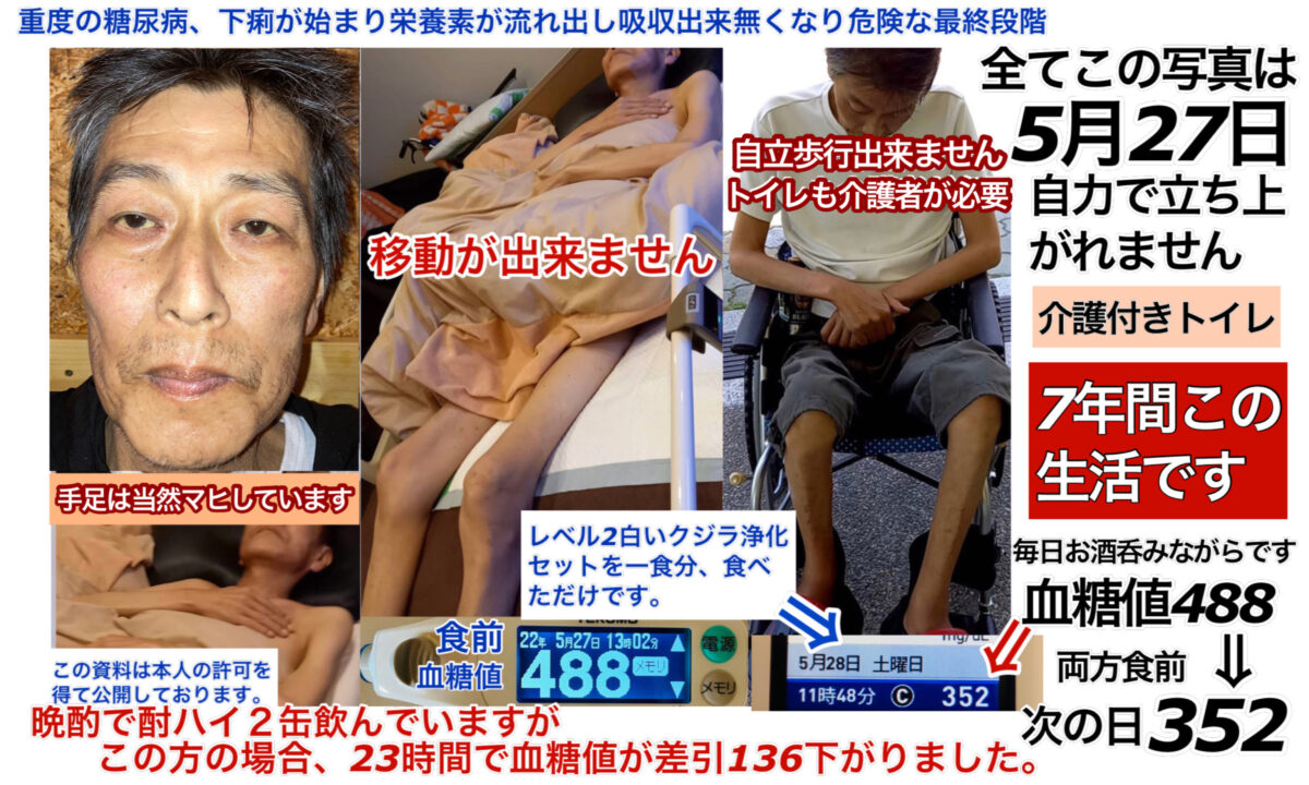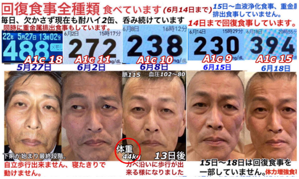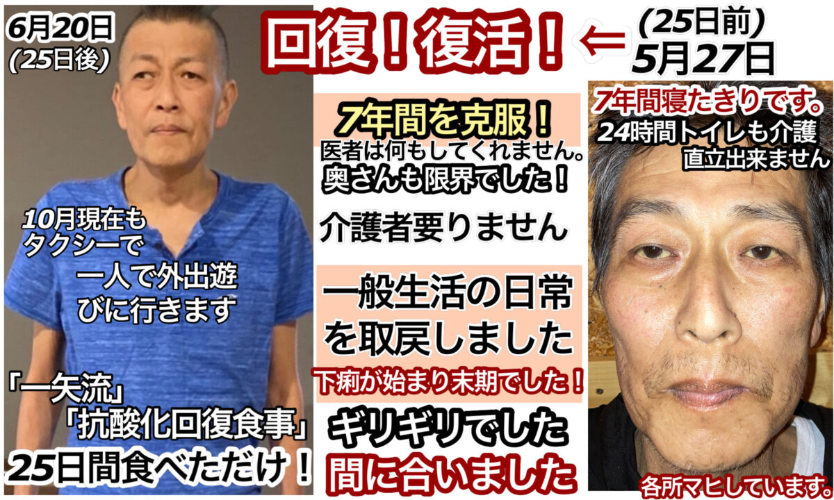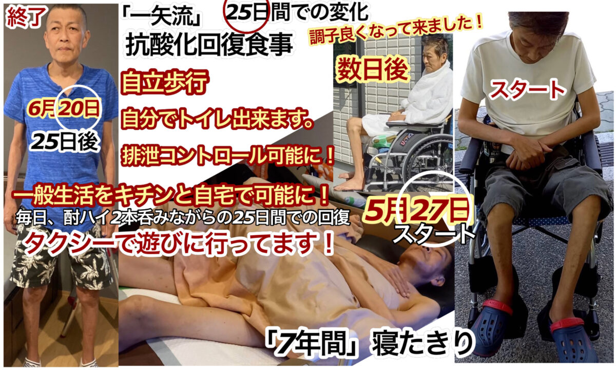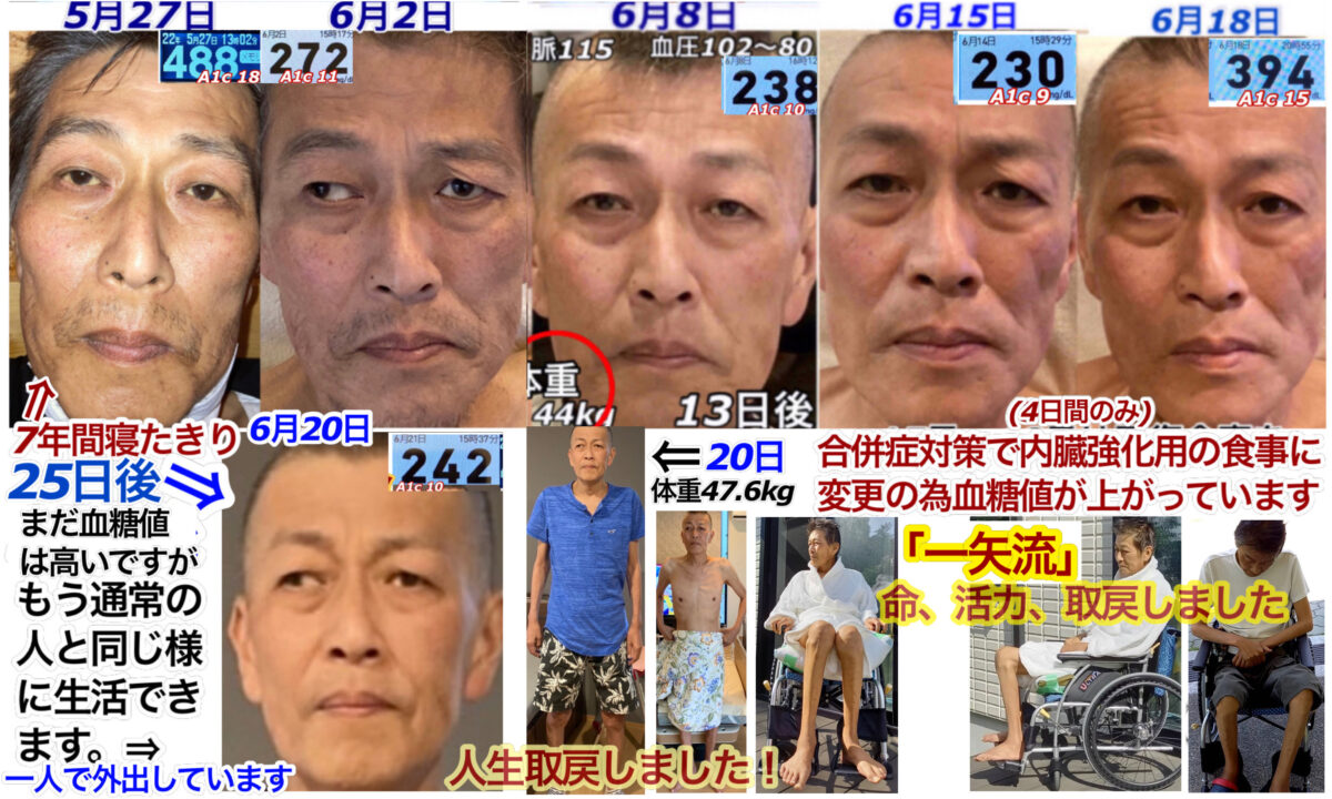 7年間寝たきりで過ごした重度の糖尿病患者「一矢流」「抗酸化回復食事」-25日間での回復の結果-