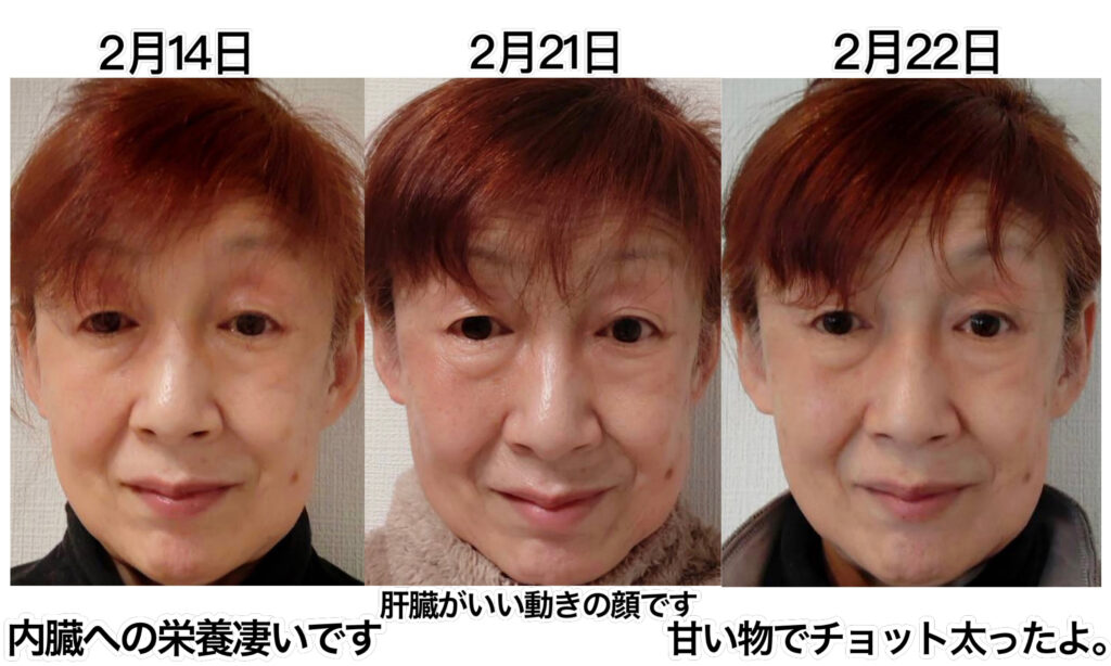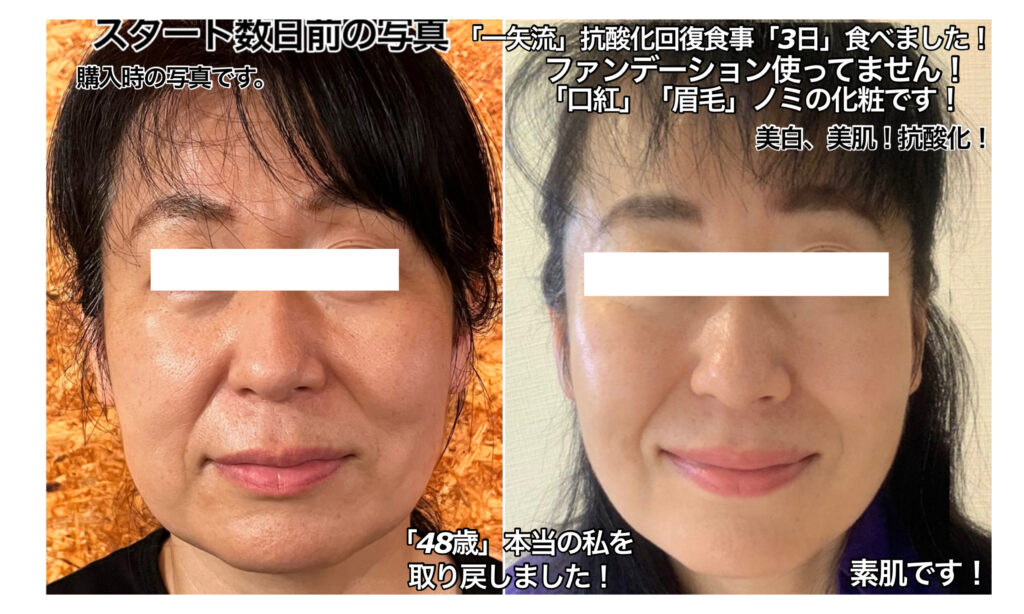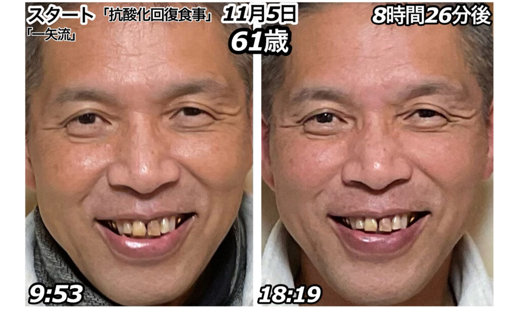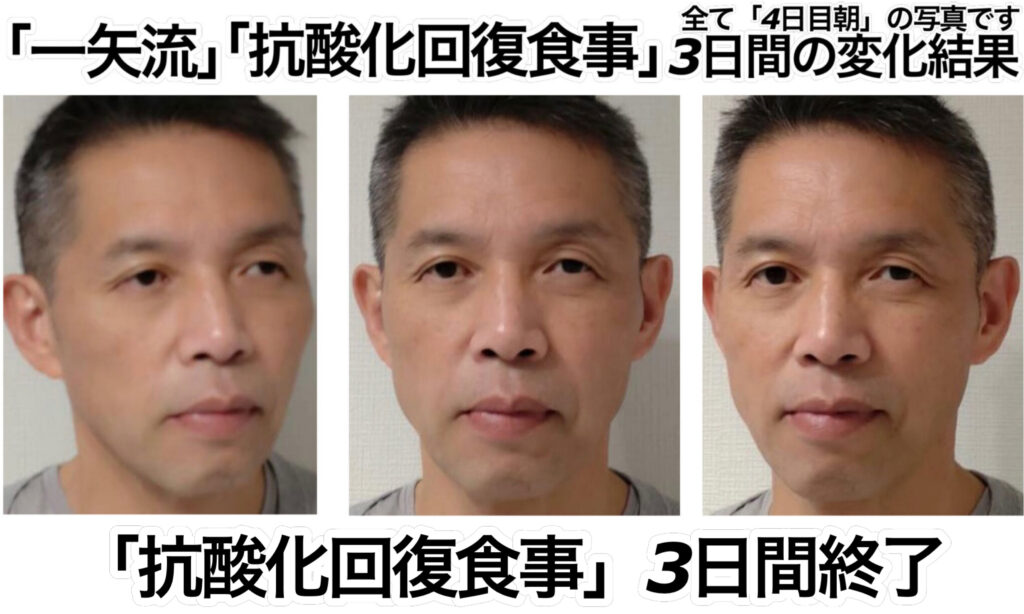 下の写真は、「一矢流 抗酸化回復食事」を3日間食べただけの結果です。