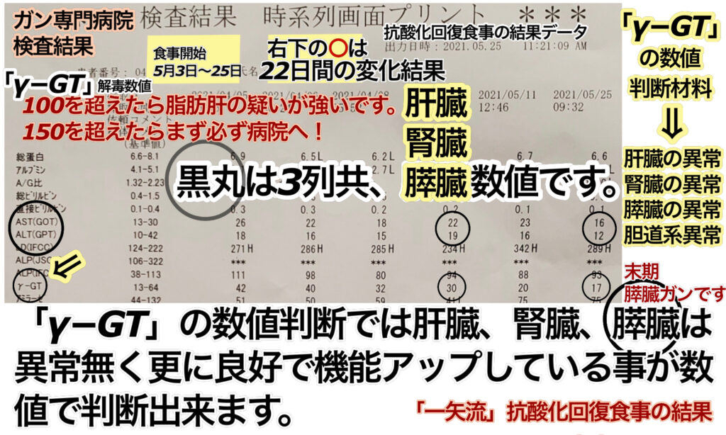 効果効能を保証するものではありませんが、「一矢流 抗酸化回復食事」を食べただけの事実の結果になります。