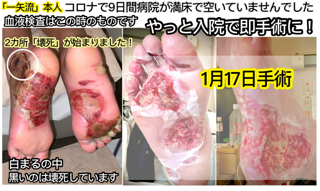 手術当初にお医者さんに宣告された内容は、『「糖尿病重度患者」であった事を踏まえて、通常の人だとおよそ半年ぐらいで治るであろう内容ですが、あなたは疾患持ちなので、1年〜1年半くらいかかっても普通です。それは良い方で、多分予測ですが、足を切断しなければならない状態の確率が50%以上あります。ひどい人は2年越しで入院する場合もあります。』との事でした。
