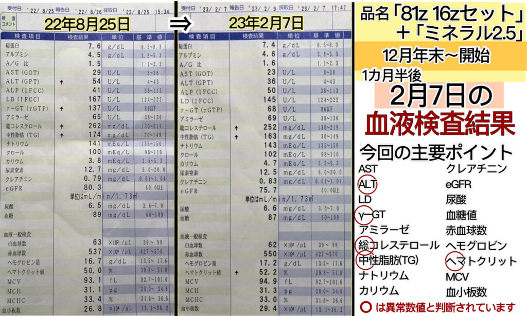 「81z 16zセット」は、肝臓・腎臓・すい臓・胆道等も同時に治してくれて、すごく優れた物だと感じています。ただのお惣菜なのに、血液検査を見て、改めて驚きました❗️凄いです❗️