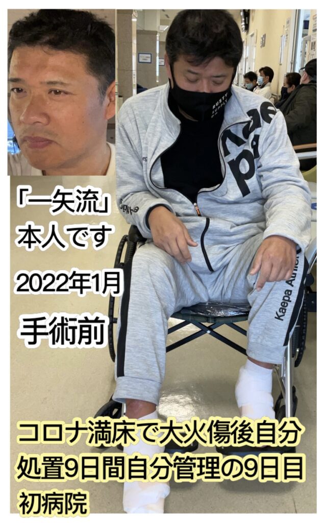 医者には火傷の面積が大き過ぎるのと深過ぎるので、皮膚が無く、皮膚になる素も無く、再生が出来ない為、皮膚移植が必要との事でしたが、皮膚と手術痕は「一矢流」の食事と特殊な「一矢流」のお惣菜を使った技法を編み出し、全て自己再生で治しました。今は何の支障も無く、普通に歩いております。