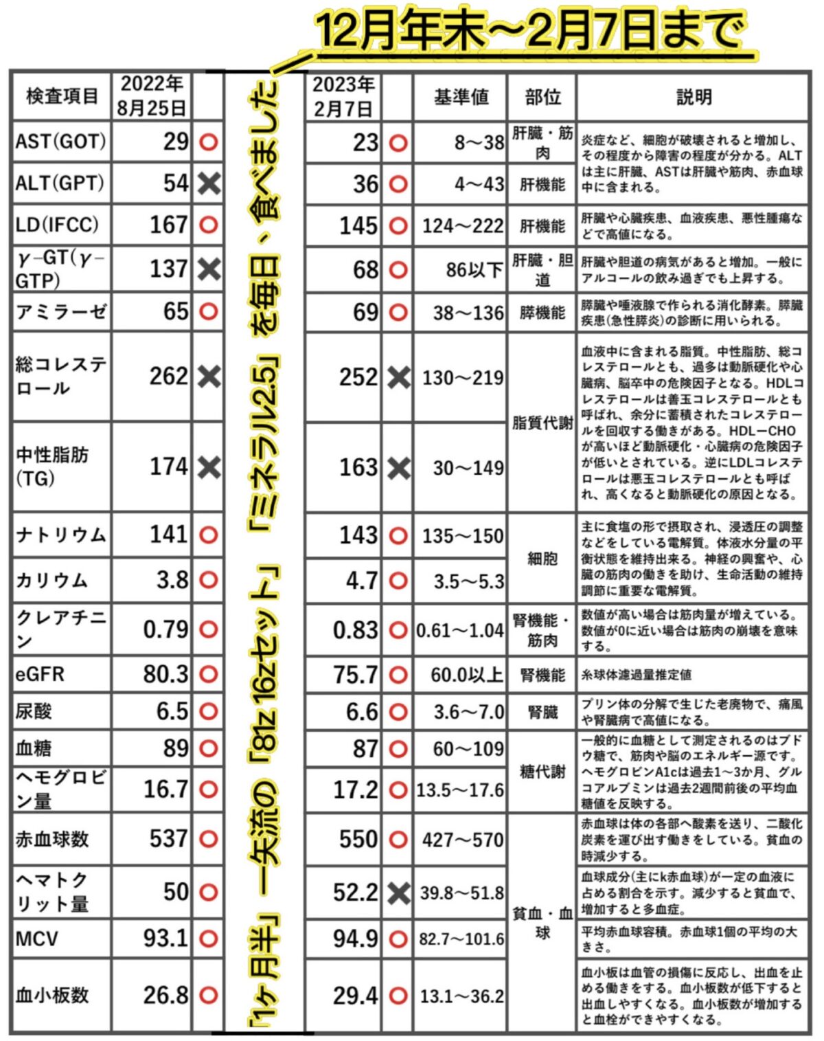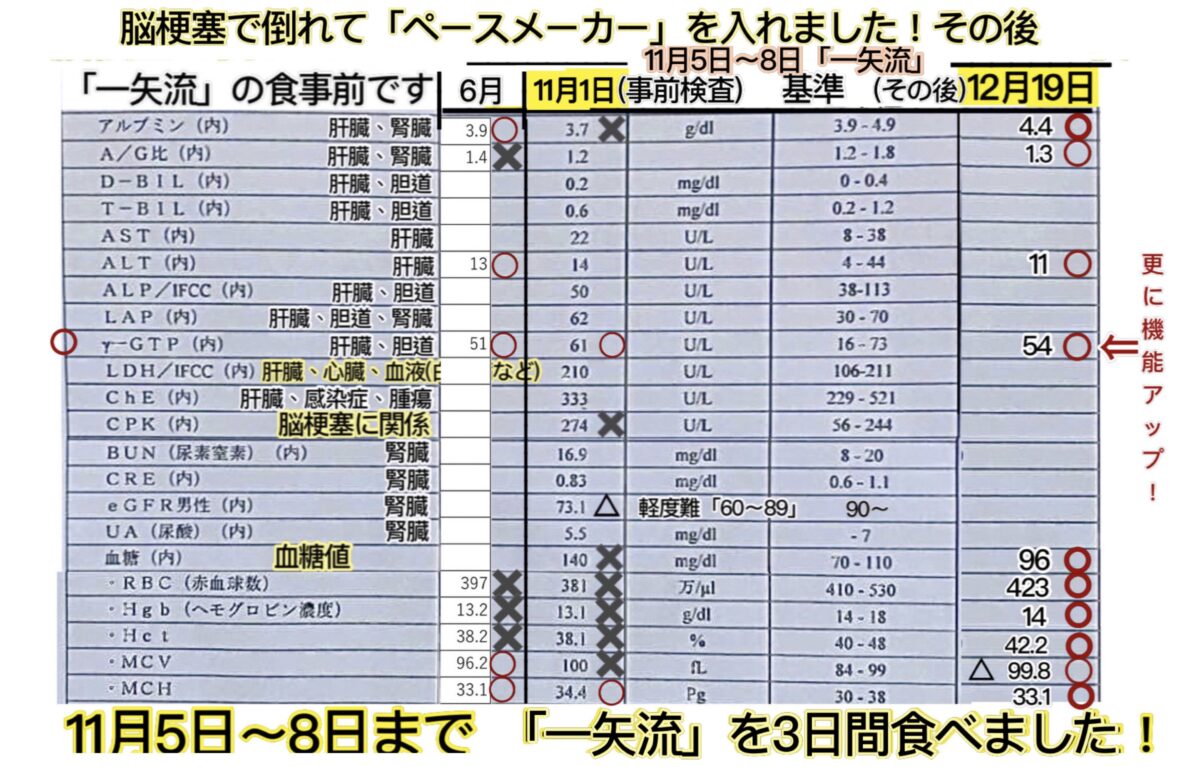 「一矢流」を11月5〜8日の3日間きちんと食べたその後の血液検査結果です。
